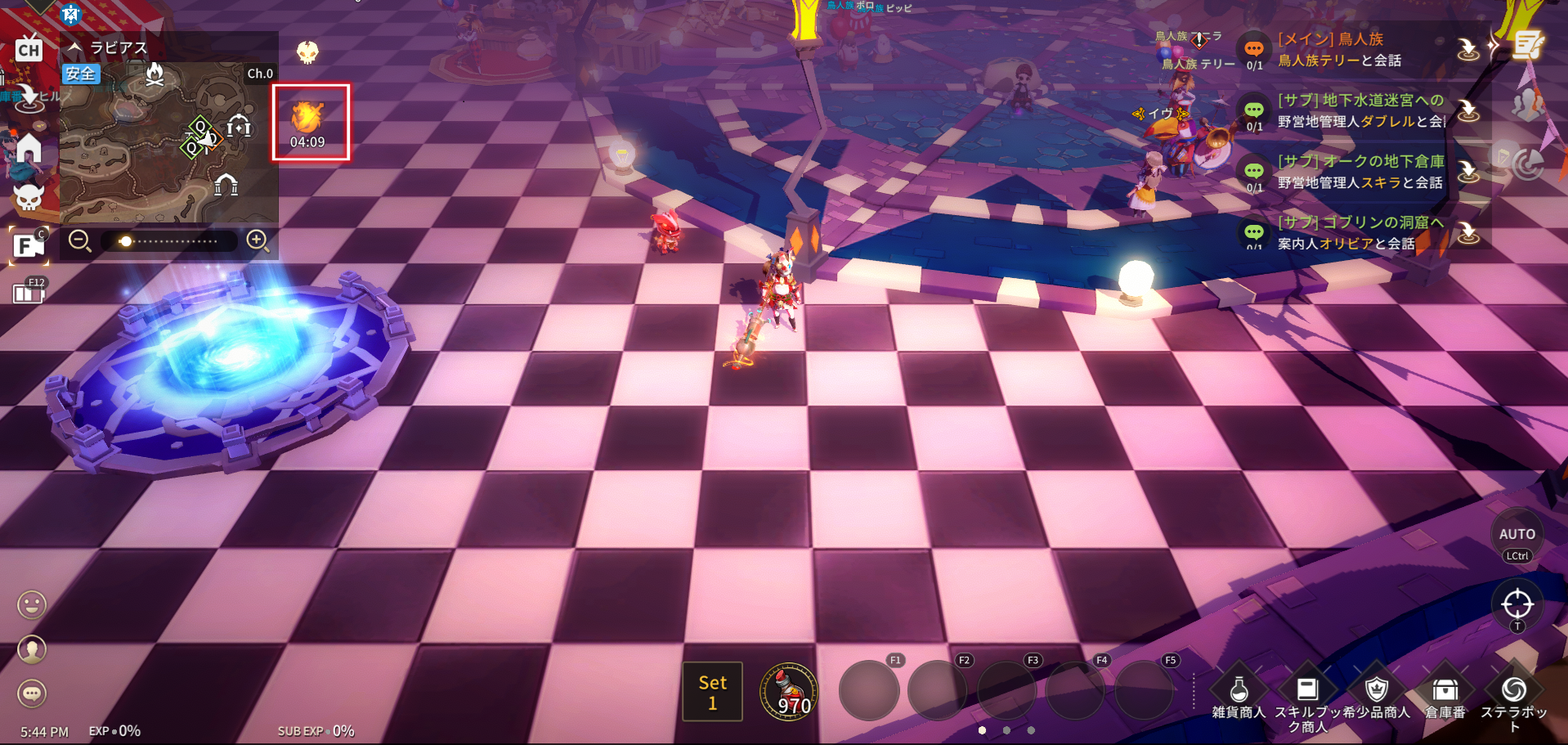 - 時間内にモンスターをすべて退治しても次段階の開始時間まで時間が経過しないと次段階に移動しません。