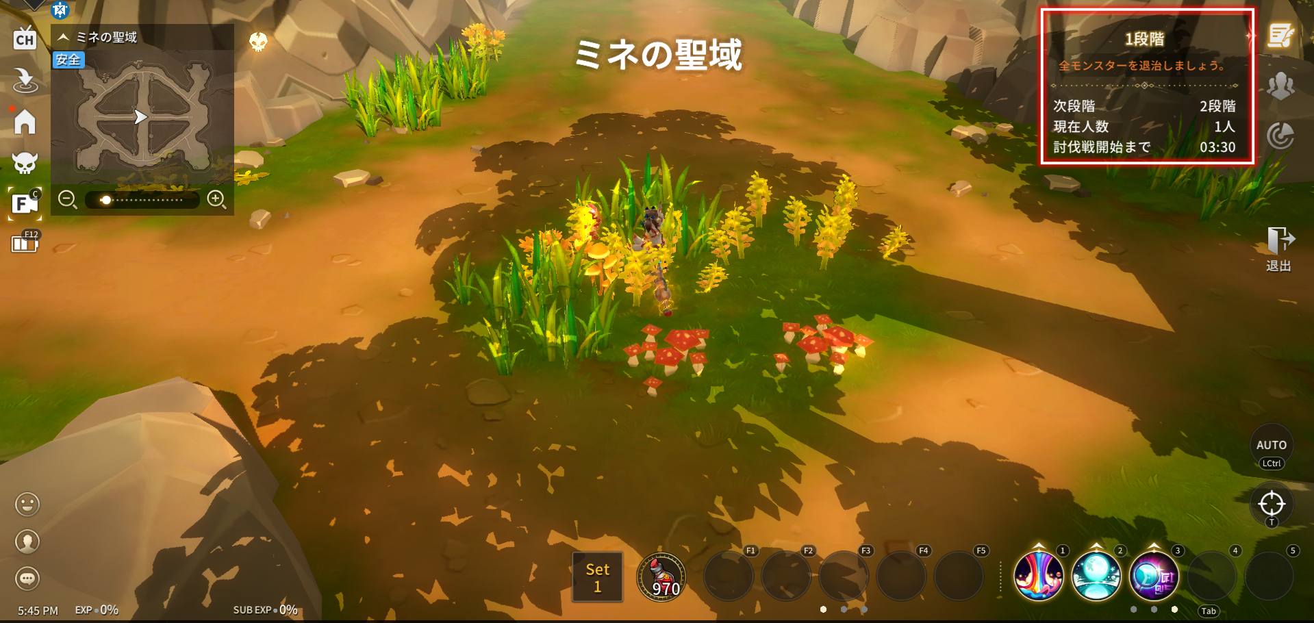 - ギルドマスターが討伐戦を開催するとミネの聖域に入場できます。