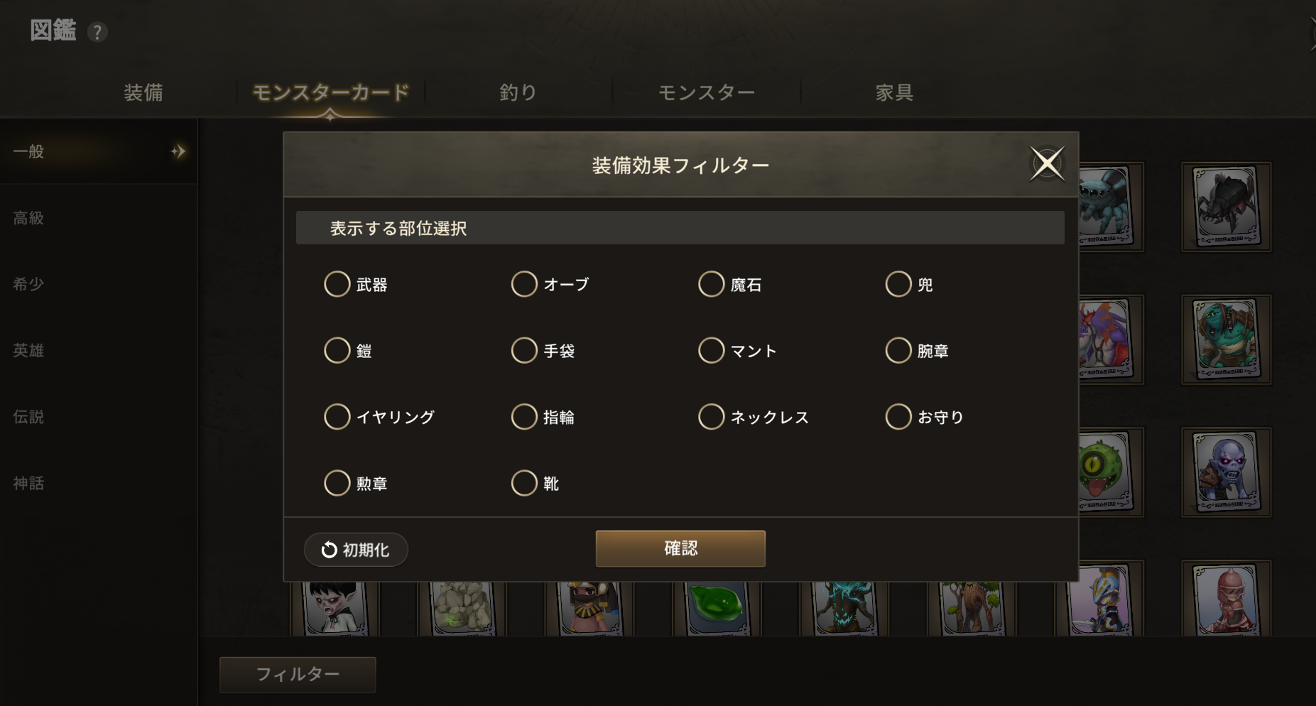 • 靴と魔石に装着可能なモンスターカードは、メンテナンス後「図鑑 >モンスターカード > フィルター」から確認できます。