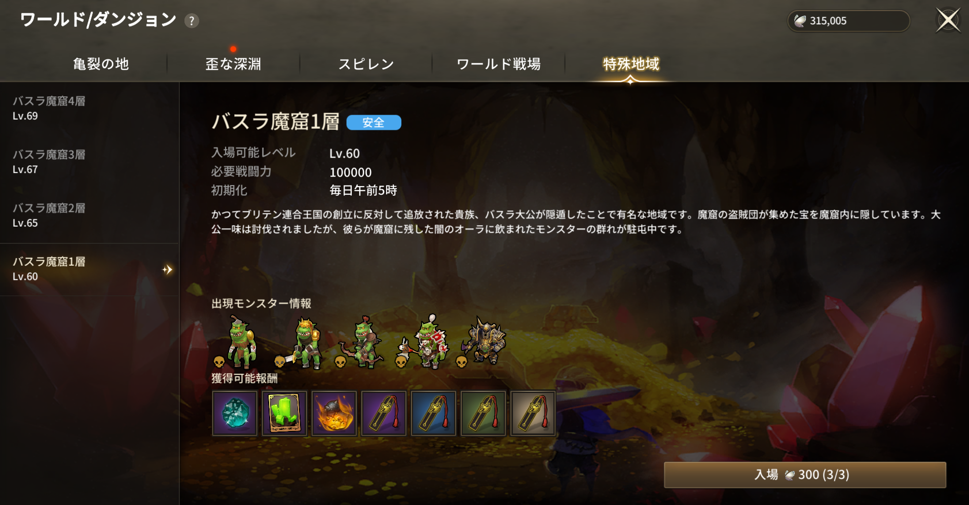 • バスラ魔窟の無料入場使用後、追加入場に必要な入場料がチケットからナビに変更しました。
