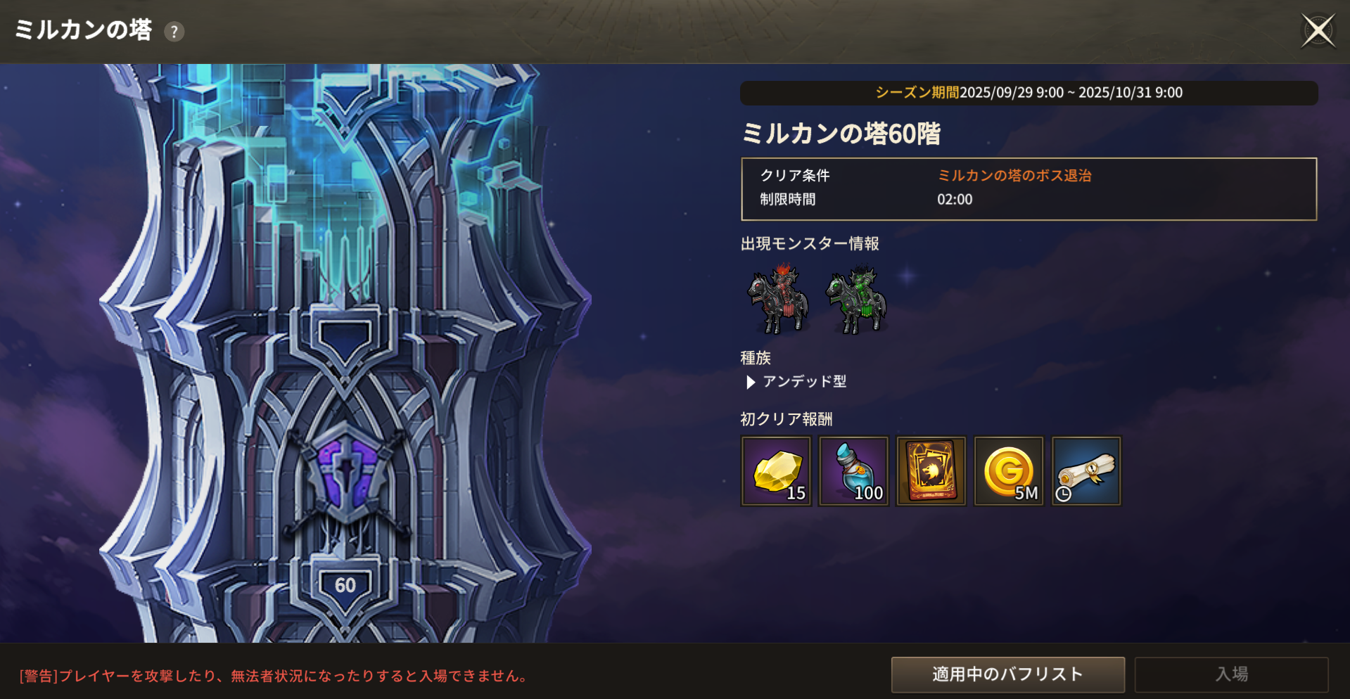 2. ミルカンの塔新規シーズン開催