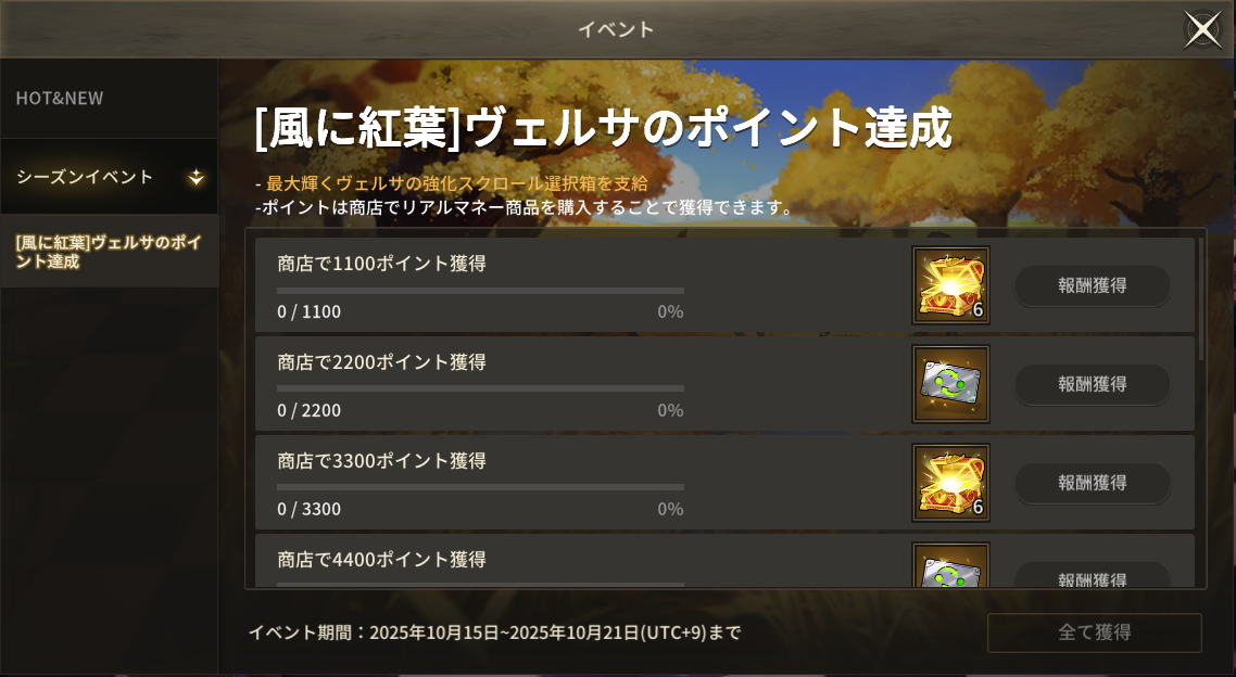 ◈ [風に紅葉]ヴェルサのポイント達成ミッション(10/15追加)