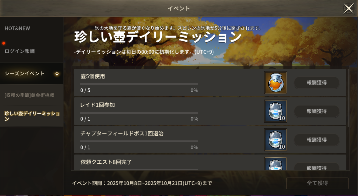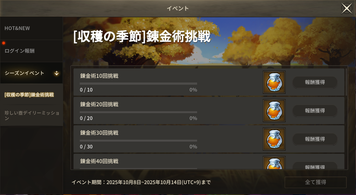 錬金術30回挑戦 | 珍しい壺(イベント) | 1 |
