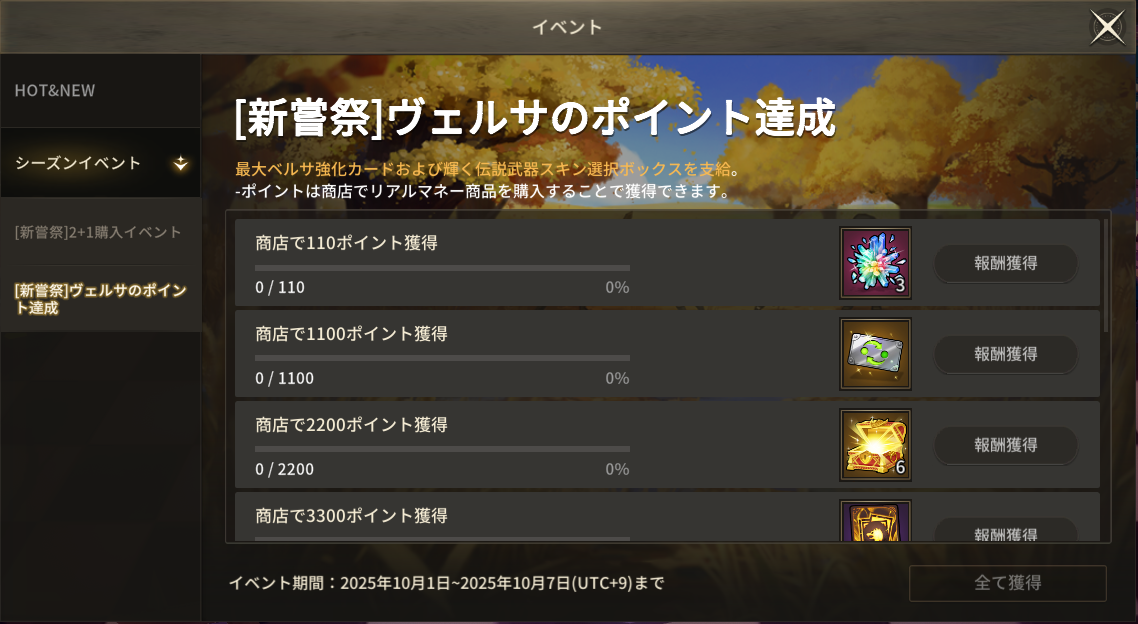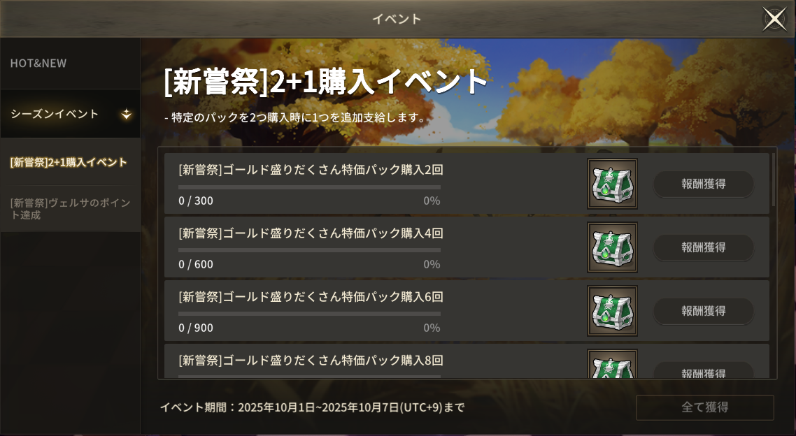 - 10/1(水)メンテナンス後 ~ 10/7(火)23:59まで