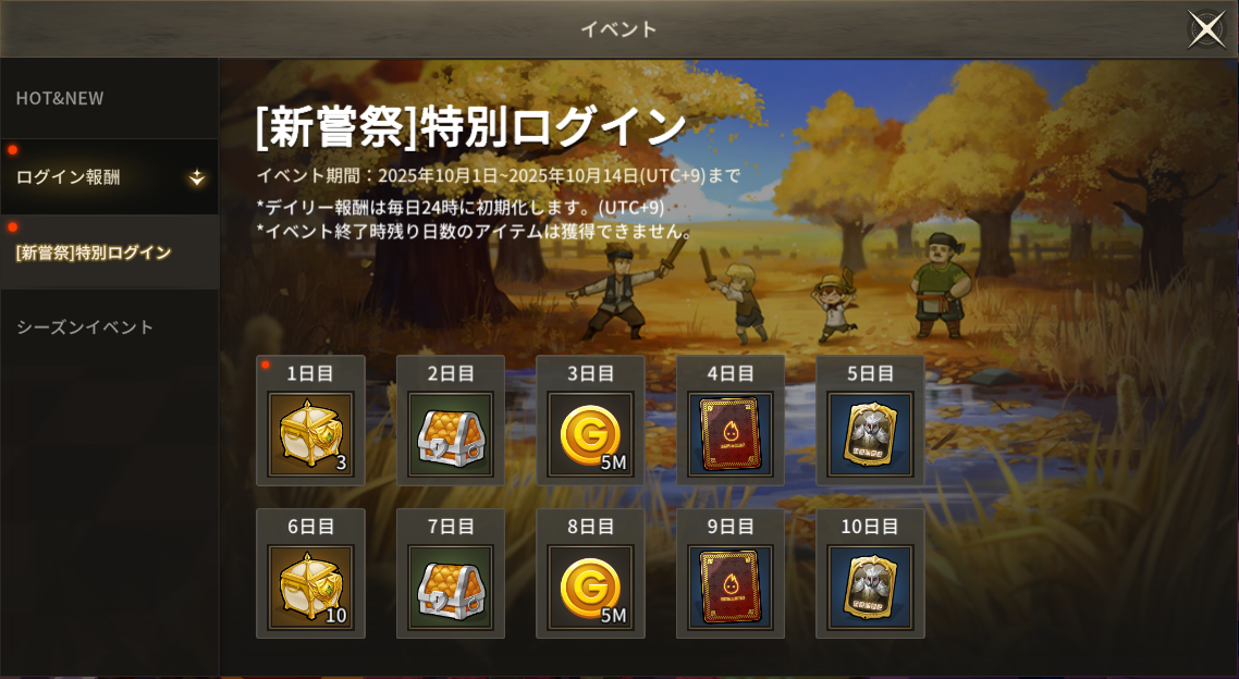 - ゲーム内のイベントページから[新嘗祭]特別ログインイベントを確認できます。