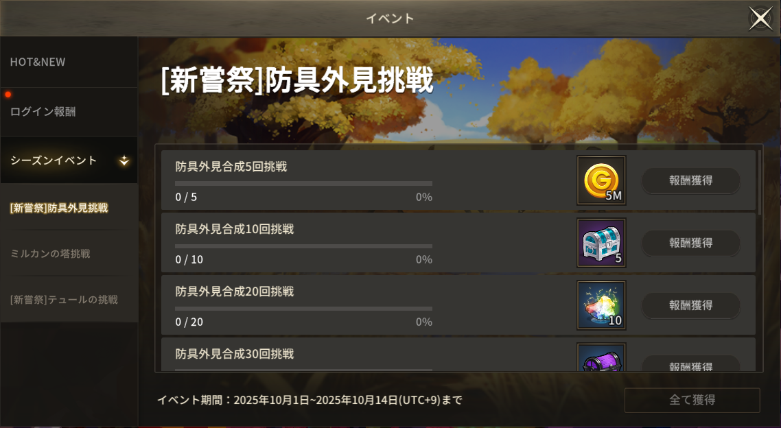 防具外見合成5回挑戦 | ![]() ゴールド |