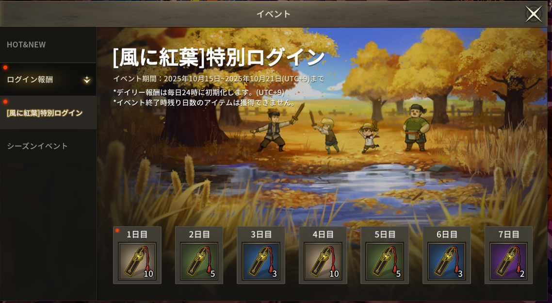 - ゲーム内のイベントページから[風に紅葉]特別ログインイベントを確認できます。