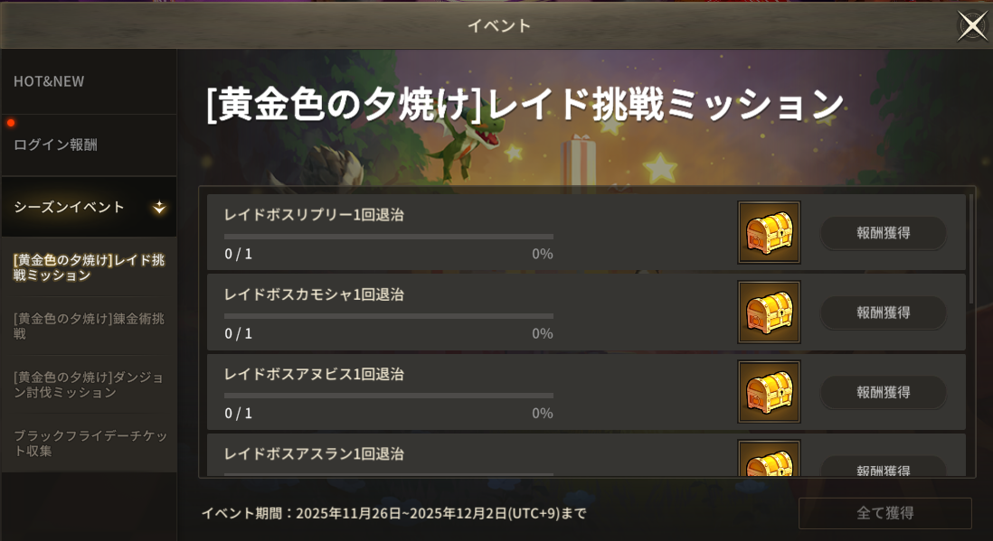 ◈ [黄金色の夕焼け]レイド挑戦ミッション