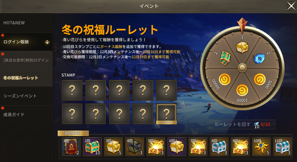 - ゲーム内のイベントページから冬の祝福ルーレットイベントを確認できます。