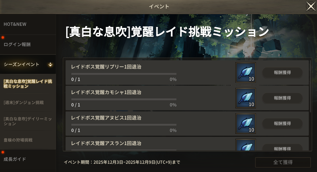 - ゲーム内のイベントページから[真白な息吹]覚醒レイド挑戦ミッションイベントを確認できます。
