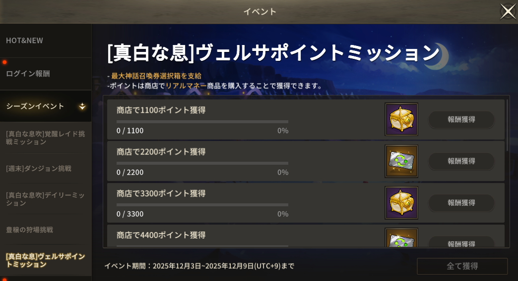 ◈ [真白な息]ヴェルサのポイント達成ミッション