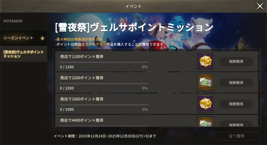 イベント[イベント]最大で神話召喚券!ヴェルサポイントイベント案内 N2025-12-24